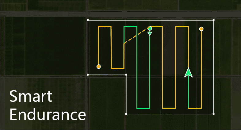 Inteligentno načrtovanje poti avtomatsko optimizira vzorce letenja glede na obliko in velikost parcele, relief terena ter vetrovne pogoje, kar maksimizira učinkovitost in zmanjšuje porabo baterije.